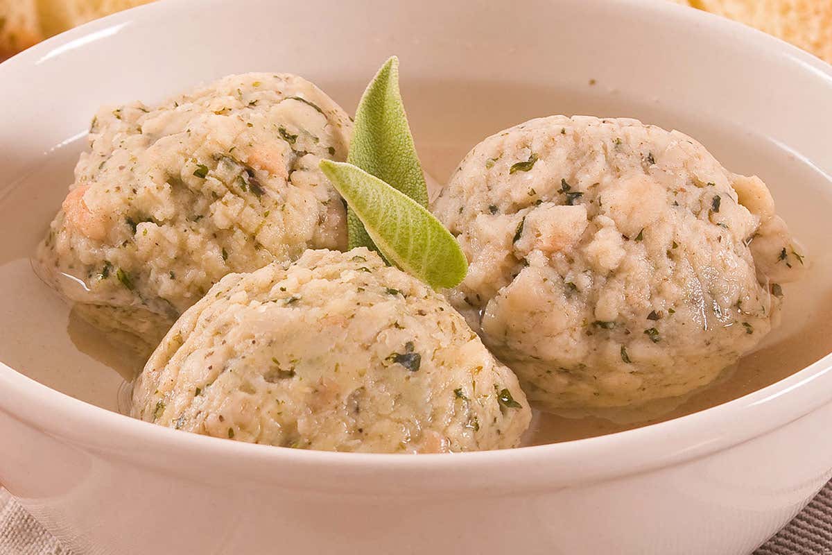 I canederli sono un simbolo della cucina tradizionale trentina, nati come piatto di recupero per utilizzare il pane raffermo e trasformarlo in uno gnocco saporito e consistente. L’impasto di pane, latte e uova si arricchisce con speck, formaggio e aromi, dando vita a morbide palline che si cuociono lentamente nel brodo o che si servono asciutte con burro fuso e salvia.