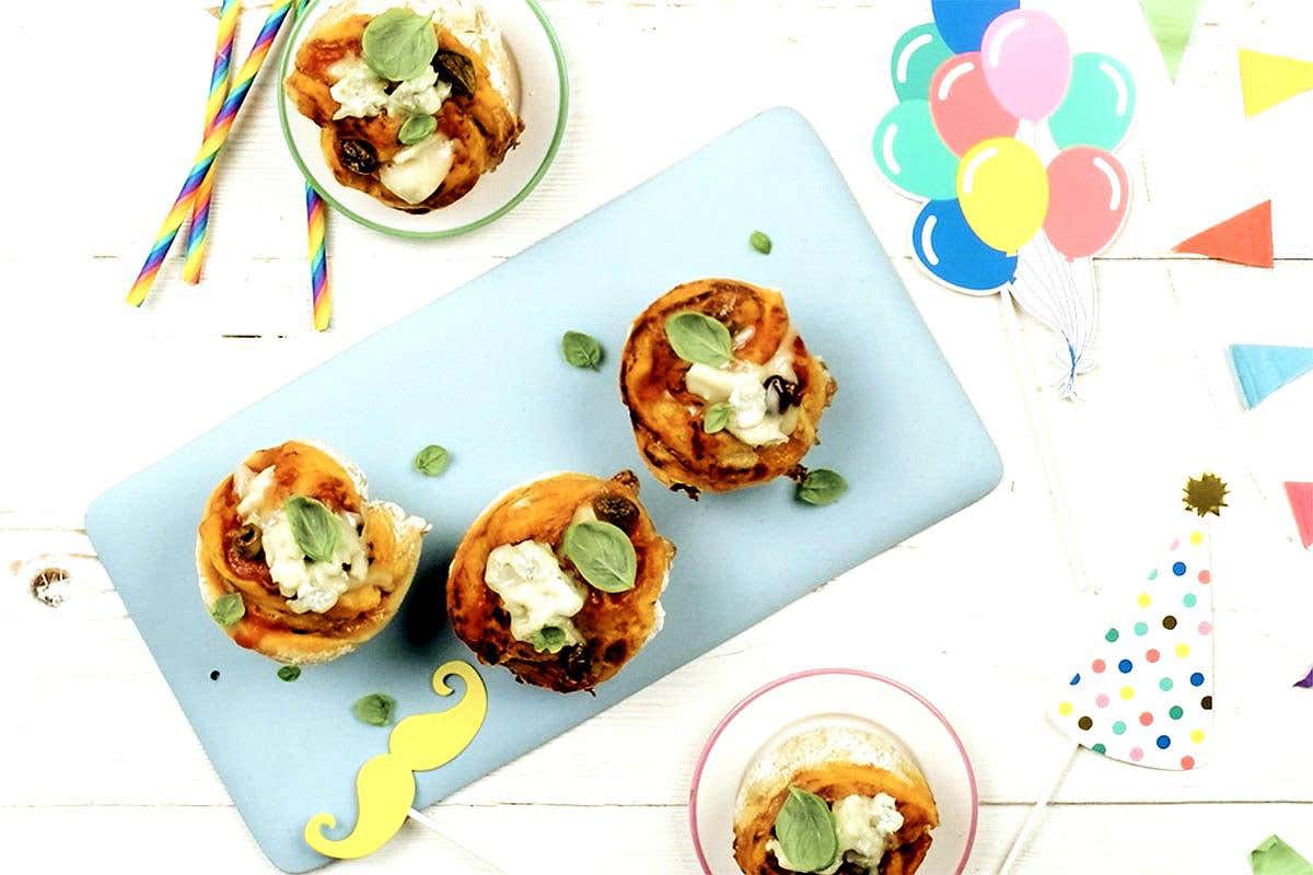 I pizza muffin con Gorgonzola Dop, pomodoro, olive e basilico sono una proposta creativa e conviviale che reinventa la classica pizza in formato monoporzione. Soffici e fragranti fuori, con un cuore filante e saporito, uniscono la dolcezza del pomodoro alla nota intensa del Gorgonzola, arricchita dalla sapidità delle olive e dalla freschezza del basilico. Ideali per aperitivi, buffet o feste, si preparano facilmente partendo da un semplice impasto per pizza, che viene farcito, arrotolato e cotto in stampi da muffin per un risultato scenografico e gustoso.