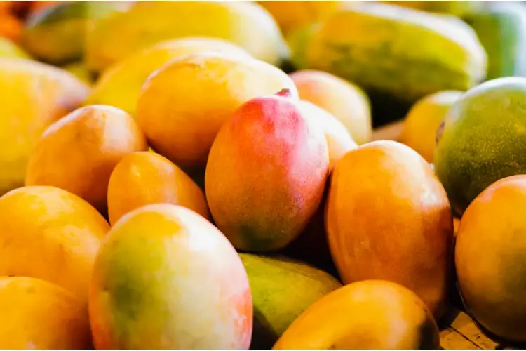 Miscelare la purea di mango alla base preparata e lasciar maturare per 24 ore. Versare nella sorbettiera e mantecare.