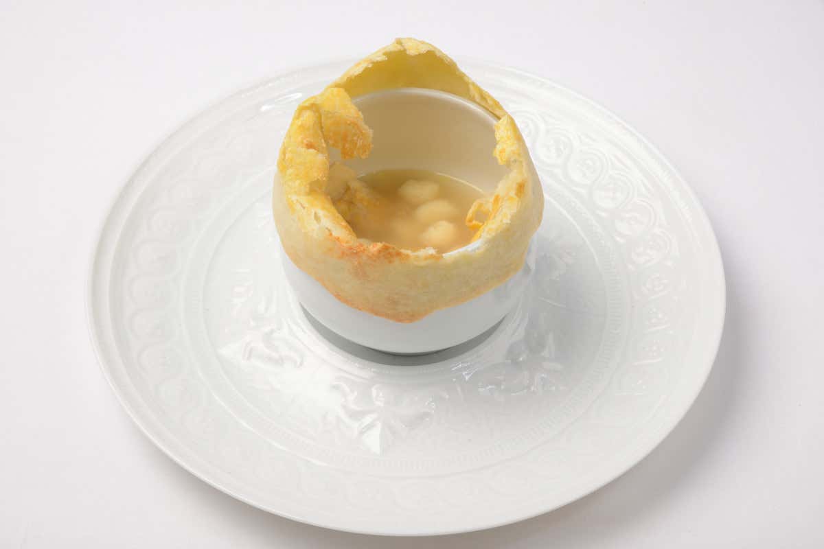 Questa ricetta raffinata unisce la delicatezza della ricotta e l'intensità di tre diversi Parmigiani Reggiani, creando soffici palline che si sciolgono in bocca. Amalgamati con asparagi e pisellini novelli, i soffici vengono cotti in un saporito brodo di gallina, per un'esperienza di comfort e tradizione.