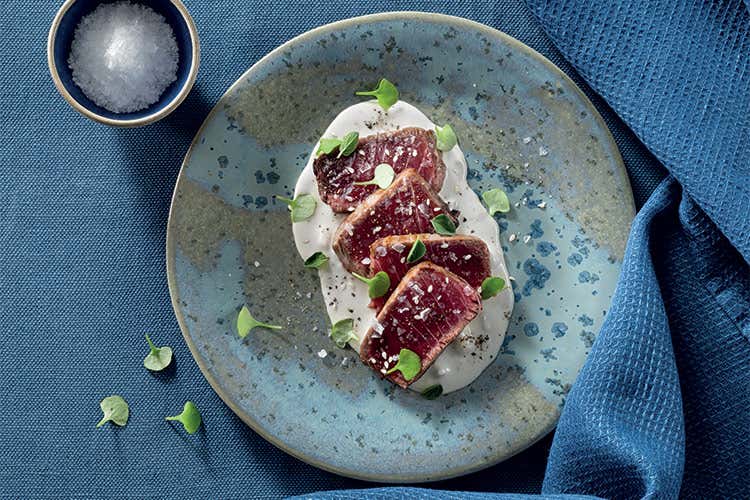 Tagliata di tonno fonduta di Gorgonzola Dop e germogli