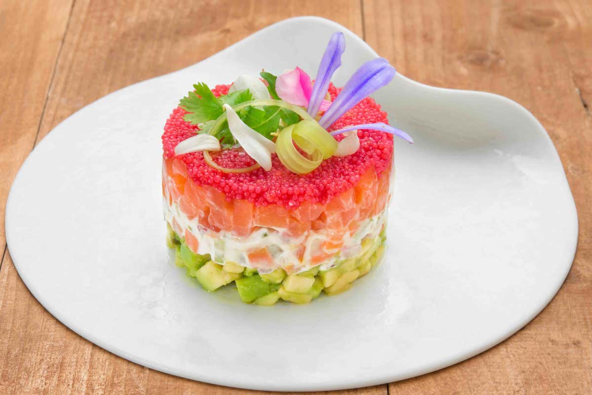 La ricetta dello chef Giuseppe Buscicchio della Tartare di salmone con avocado e uova di pesce preparata con i prodotti Unilever Food Solution per il webinar "Il tuo menu delle feste". Un piatto elegante e colorato, perfetto per un antipasto raffinato.