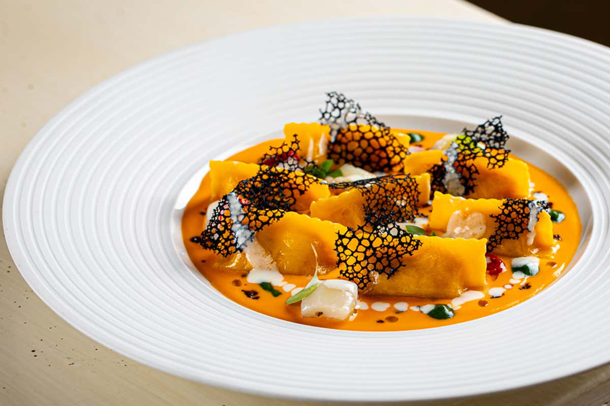 Tortelli di stoccafisso e patate alla pizzaiola con origano e olive disidratate - foto Alberto Blasetti Tortelli di stoccafisso e patate alla pizzaiola con origano e olive disidratate