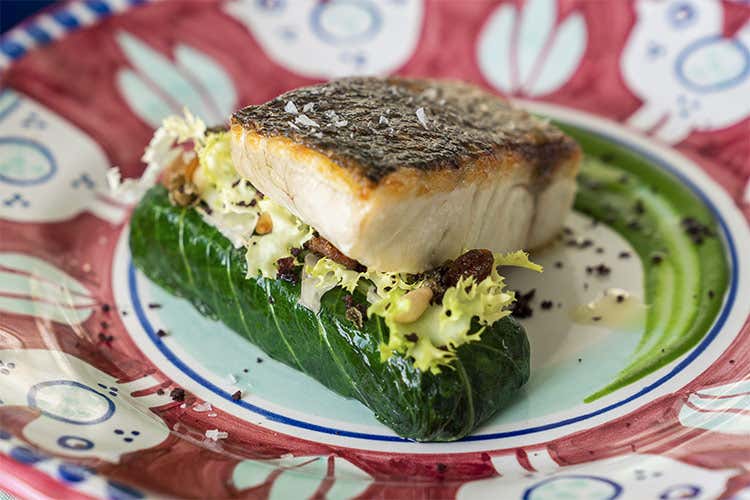 Trancio di spigola arrostito con terrina di scarole alla napoletana