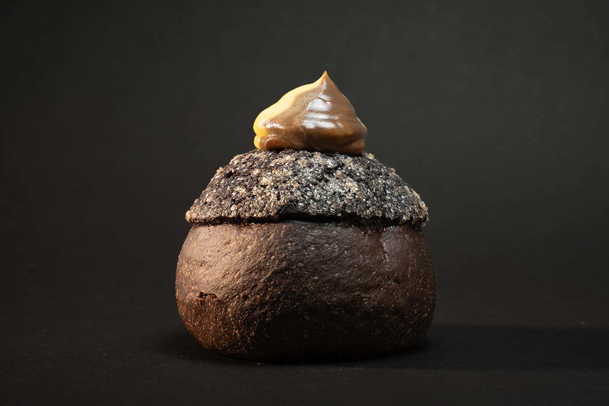 La Veneziana Blackery firmata da Leonardo Di Carlo è una reinterpretazione contemporanea di un grande classico della colazione italiana, in cui tecnica, ricerca e materia prima si incontrano. L’impasto brioche, realizzato con la miscela al cacao Blackery Forte di Molino Dallagiovanna, si distingue per struttura soffice e profonda aromaticità, frutto di una lavorazione attenta e di una lunga lievitazione che ne esalta fragranza e digeribilità.
