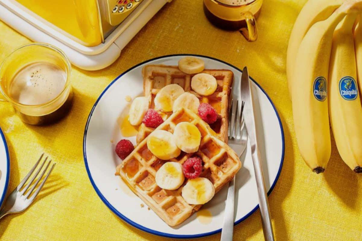La ricetta degli Waffle vegani con banane Chiquita, sciroppo d'acero e lamponi. Un dessert perfetto per una colazione o merenda leggera e gustosa, ideale per chi cerca un’opzione dolce ma naturale.
