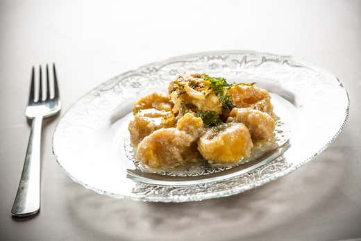 Per le proporzioni patata/zucca, dipenderà dal gusto che volete far prevalere. In questa ricetta io faccio prevalere la zucca: la proporzione è infatti di 2 parti di zucca per una di patate. Date la forma che desiderate, da quella classica utilizzando i rebbi della forchetta a quella di piccoli dadi. Cuocete in acqua salata fino a quando saliranno a galla. Scolate e condite con un goccio d’olio.