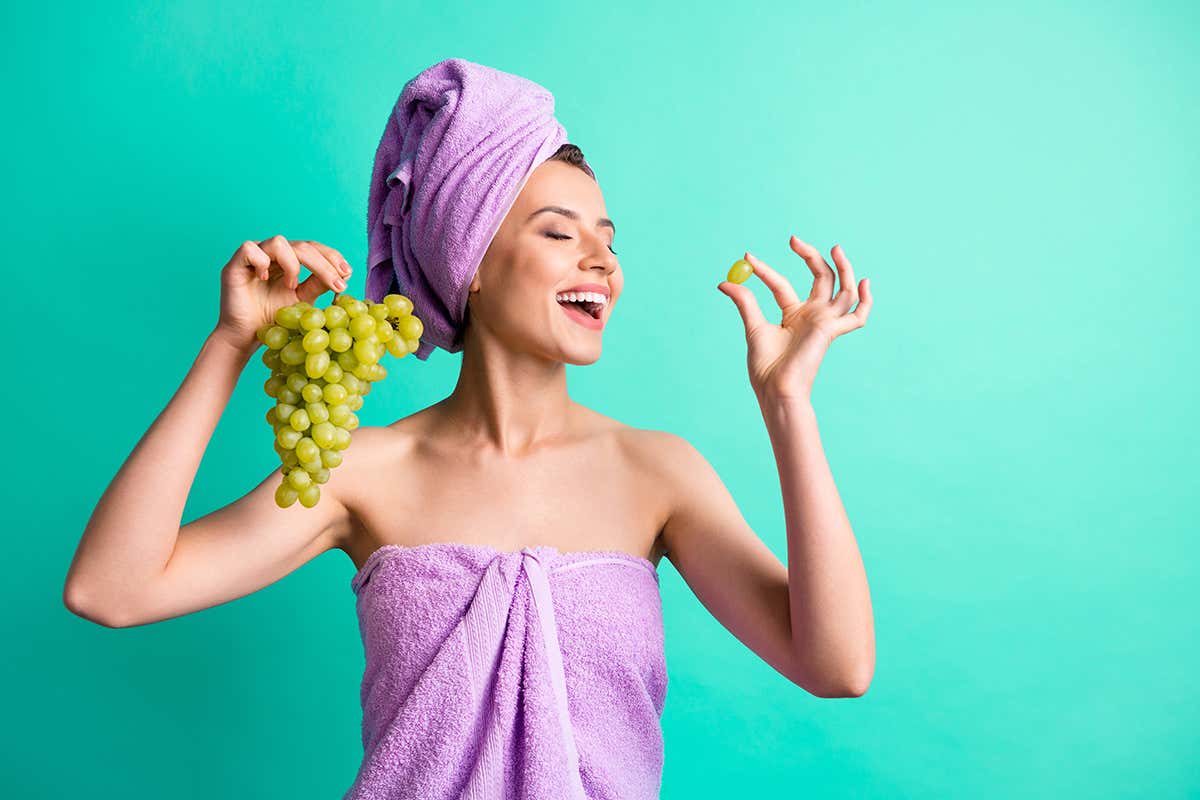 Per quanto riguarda le vitamine, l’uva contiene la A, la B, la C, preziosissimi scudi per il nostro sistema immunitario, soprattutto tra settembre e ottobre. Ricca anche di potassio e povera di sodio. Buono anche il quantitativo di acido fosforico e silicio che fanno bene a pelle e a capelli: questo l’avevano già scoperto gli antichi 4.000 anni fa, visto che gli impacchi di uva veniva utilizzati già all’epoca per avere cute e chiome toniche e lucenti. Gli acini contengono anche acido linolenico, un grasso acido fondamentale per preservare la compattezza e l’elasticità della nostra pelle.