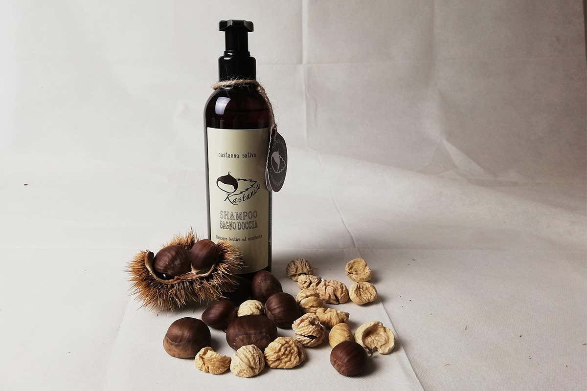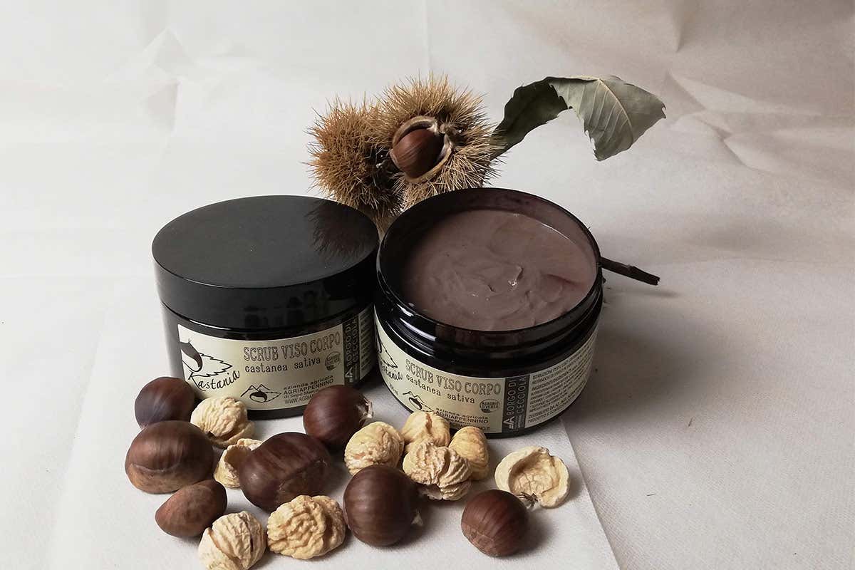 Scrub viso e corpo arricchito da granuli abrasiviOltre alla vendita di farina e castagne secche, l'azienda si avvale della collaborazione di laboratori artigianali con cui si è consolidata una costante ricerca e