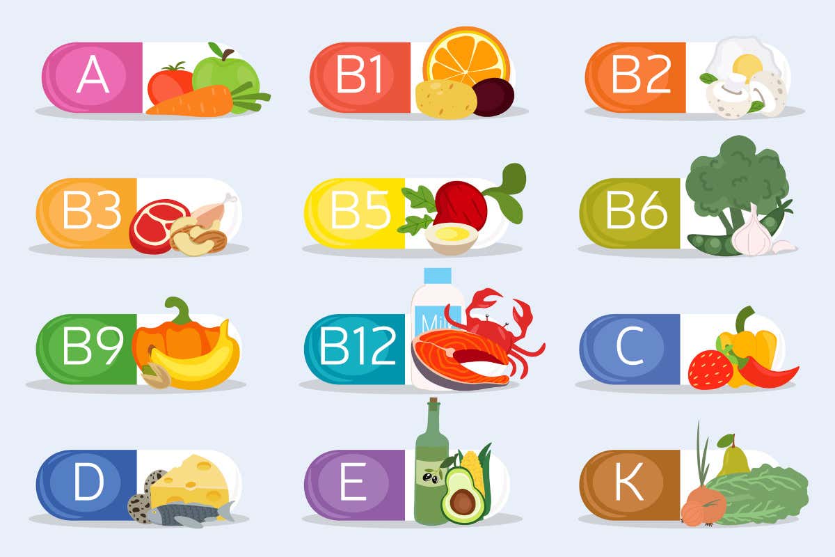 Proprio in relazione a tutte le loro funzioni e in base alla loro struttura chimica, le vitamine vengono distinte in classi. In particolare, si riconoscono la vitamina A o retinolo, vitamina D o calciferolo, vitamina E o tocoferolo, la vitamina K, le vitamine del gruppo B, come ad esempio la B9 o acido folico o la vitamina B12 o cobalamina, e la vitamina C o acido ascorbico.