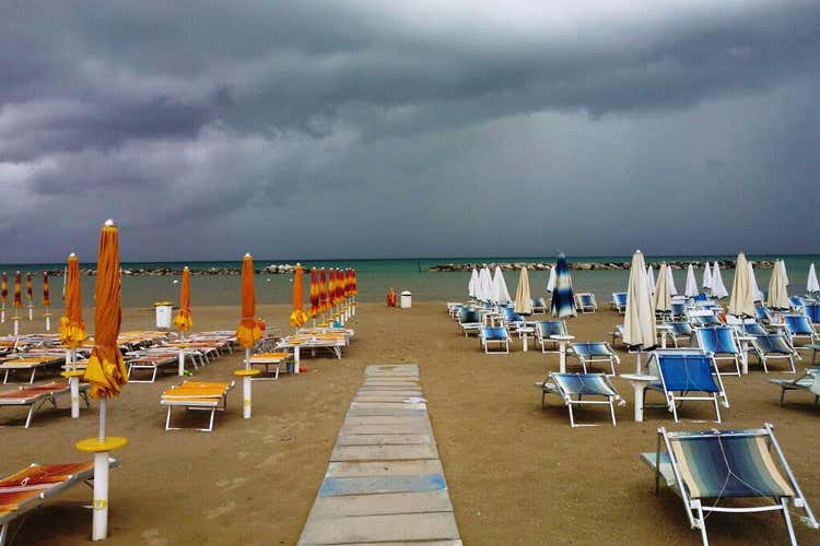 Ombrelloni chiusi nelle località di villeggiatura (Turismo, il maltempo gela gli affariFipe: «Persi 2,9 miliardi di euro»)