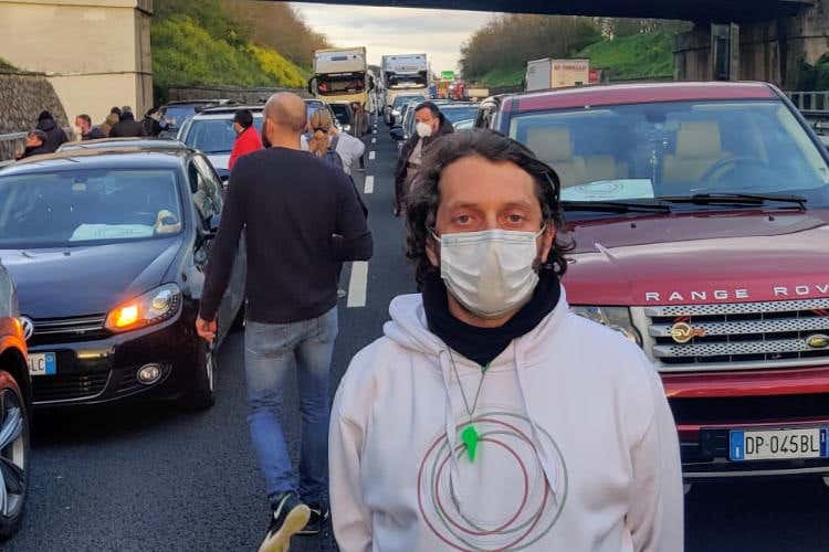 Pasquale Naccari (Tni) durante il blocco dell'autostrada ad Orte