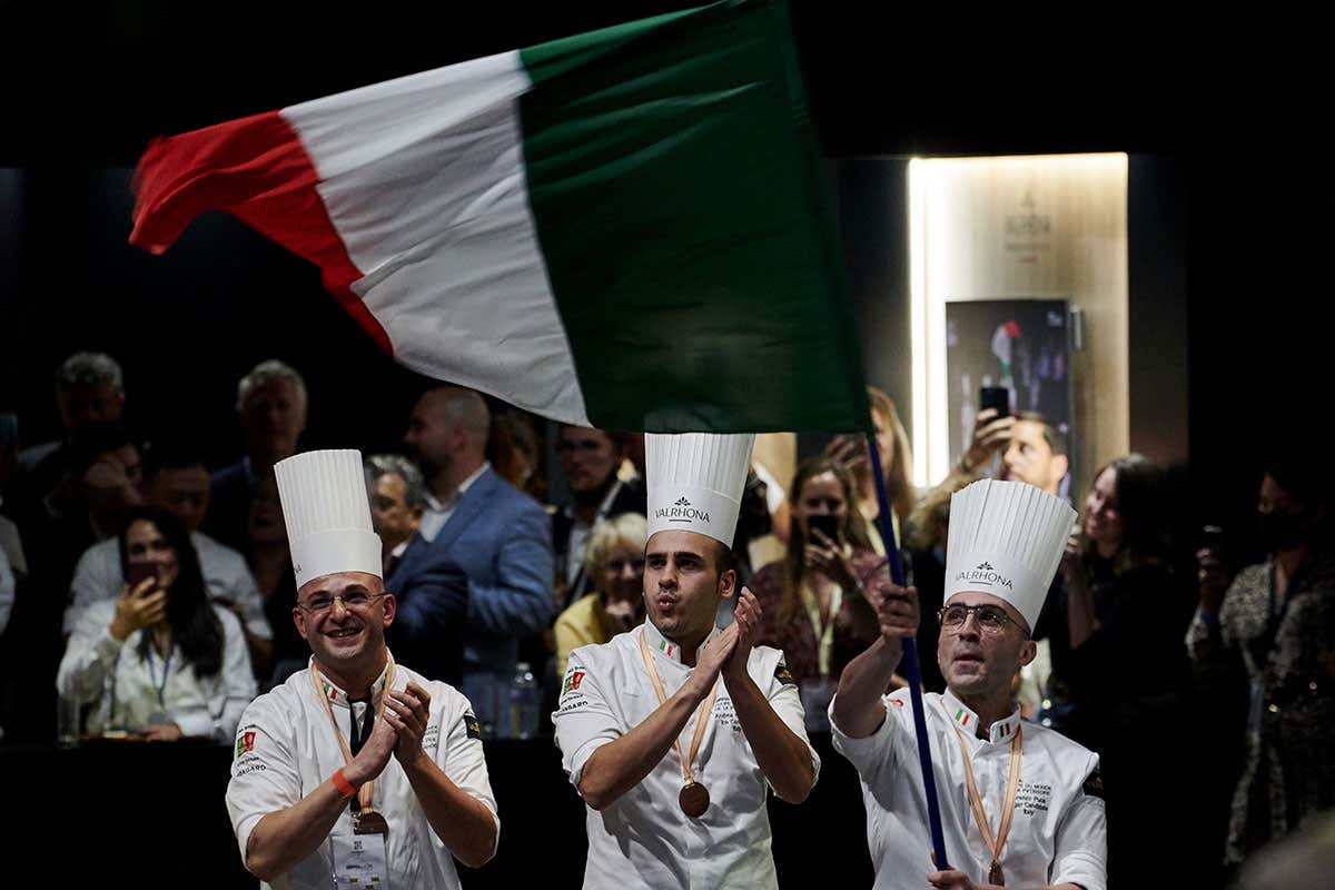 L’Italia questa gara la sente da sempre come un suo territori di confronto e ci ha semrpe puntato molto. Stavolta il team per due terzi era composto da quello che nel 2019 avea conquittao il bronzo. Lorenzo Puca, 32 anni, è semrpe il capitano esperto di zucchero. Poi c'è il ventottenne, Andrea Restuccia, che quest’anno ha dovuto misurarsi come pasticcere dopo che è stata eliminata dal nuovo regolamento la prova di scultura del ghiaccio. La new entry era Massimo Pica, 36 anni, campano, l'esperto di cioccolato. Hanno avuito 10 ore per realizzare il dessert al cioccolato da condividere, la torta gelato, il dessert da ristorante, la scultura di zucchero alta 165 cm e, con la stessa altezza, una pièce al cioccolato.