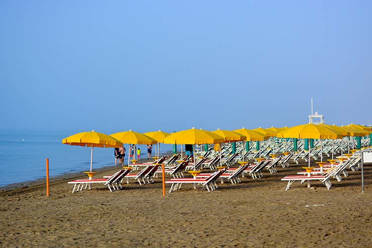 Le lunghe spiagge del Veneto, con due metri / due metri e mezzo tra un ombrellone e l'altro