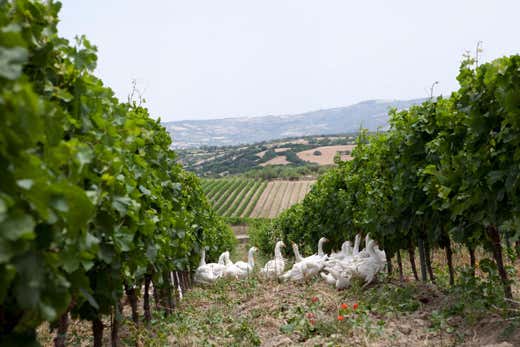 «Si ribalta il concetto tradizionale», spiega Stefano Di Blasi, agronomo ed enologo. «La vigna non è solo ciò che si vede, foglie e grappoli. Soprattutto ciò che è nascosto, ovvero le radici che affondano nel terreno e che stiamo analizzando dal 2002». Per questo sono bandite le macchine e si usano i cavalli da tiro (l’azienda Olianas ne ha due, Vegas e Dinette) che hanno un impatto meno aggressivo sul terreno. Le oche e le pecore contribuiscono invece a contenere la crescita dell'erba e a ripulire il fogliame in modo naturale e non invasivo sostituendo le macchine, e utilizzando in autunno il vigneto come pascolo naturale.