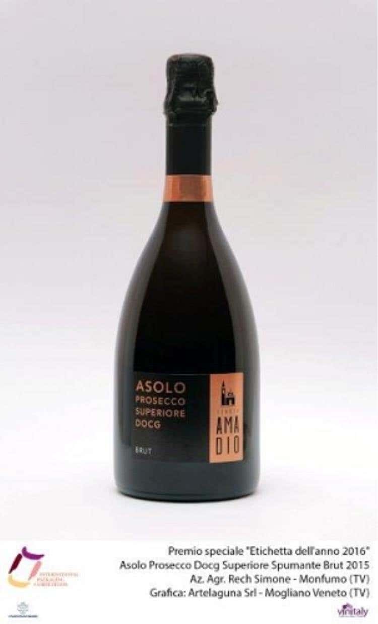 Etichetta dell’anno 2016” è stato assegnato al vino Asolo Prosecco Docg Superiore Spumante Brut 2015 della Tenuta Amadio - Monfumo (TV) - Grafica: Artelaguna Srl - Mogliano Veneto (TV).