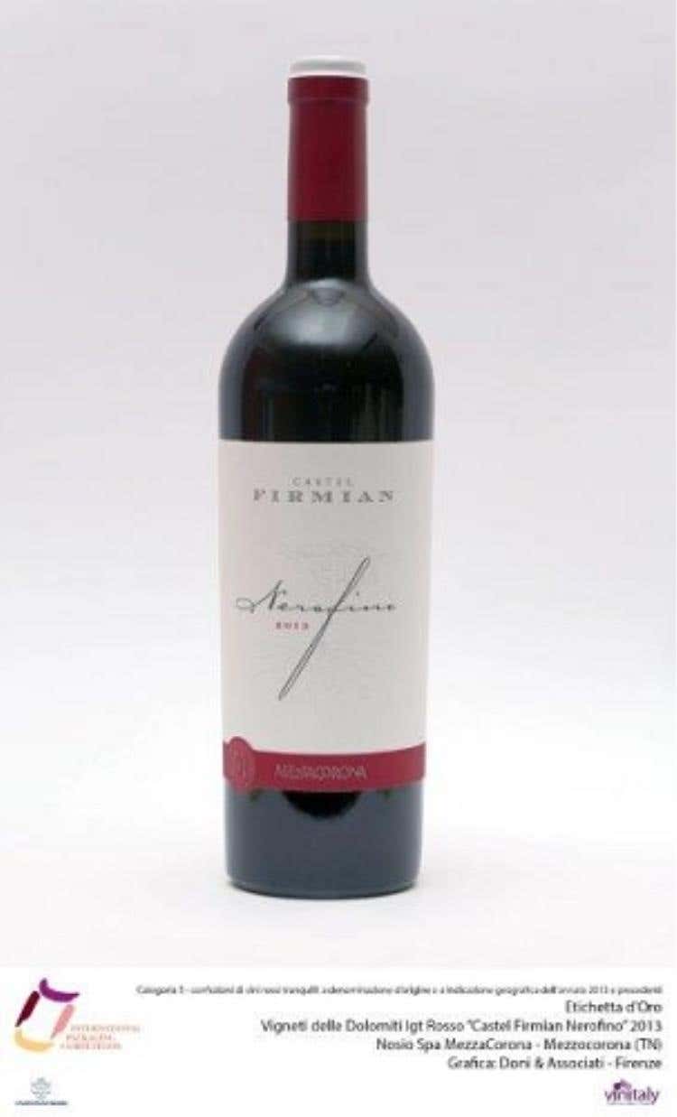 Categoria 5: confezioni di vini rossi tranquilli a denominazione d’origine e a indicazione geografica dell’annata 2013 e precedentiEtichetta d’OroVigneti delle Dolomiti Igt Rosso “Castel Firmian Nerofino” 2013