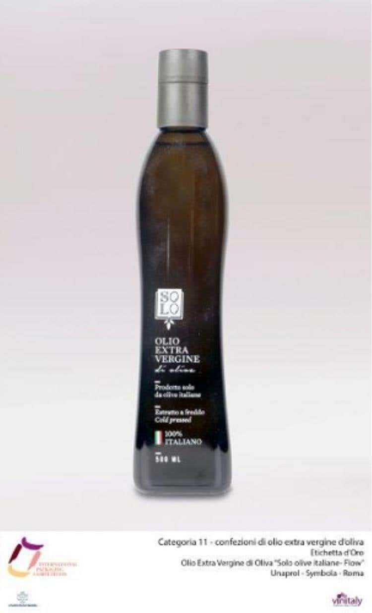 Categoria 11: confezioni di olio extravergine d’olivaEtichetta d’OroOlio Extra Vergine di Oliva “Solo olive italiane- Flow”