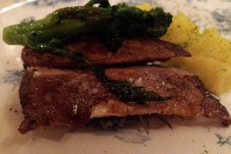 Piatto forte della serata, la Pluma di maiale iberico con cicoria.