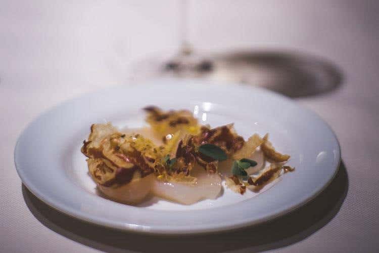 Carpaccio di capasanta, guanciale croccante e maggiorana (I vini di Hofstätter Al Carroponte