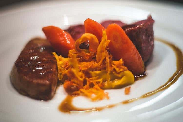 Agnello, foie gras e carote in differenti consistenze (I vini di Hofstätter Al Carroponte
