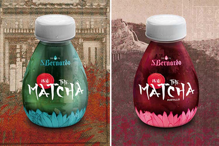 Il primo, il pregiato The Matcha, è ricavato da foglie di tè verde essiccate e polverizzate. È ricco di polifenoli e antiossidanti (dieci volte tanto rispetto a un comune tè verde) e per questo è alleato del benessere di ciascuno. Il The Matcha in Acqua Minerale S. Bernardo è «privo di zuccheri e di edulcoranti - ha spiegato Biella - realizzato con prodotti naturali»; contiene solo quattro calorie apportate dall'infuso. «Il The Matcha lo presentiamo anche in una versione più delicata, leggermente più dolce, al mirtillo»: questa versione, in cui il sapore inconfondibile del matcha si coniuga con il gusto selvatico del succo di mirtillo, è addolcita con poco zucchero di canna, ma il contenuto calorico totale «è comunque basso, non va oltre le 18 calorie».
