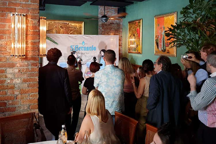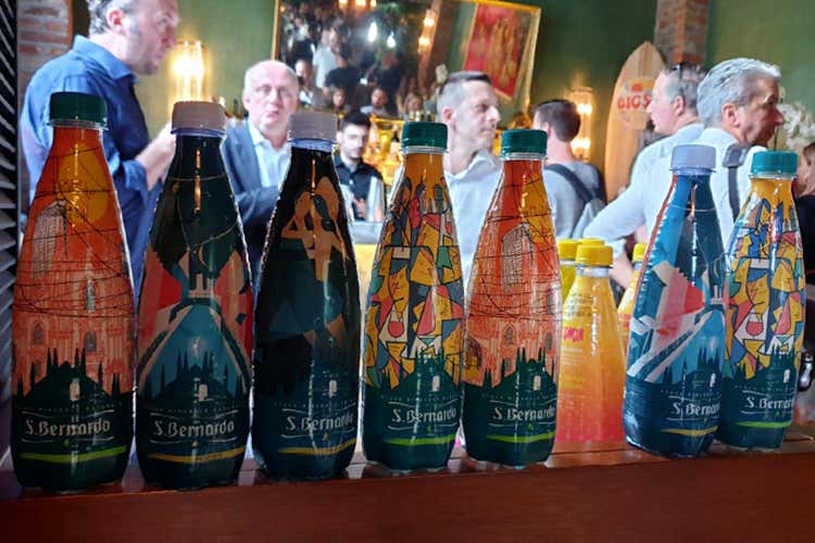 «Naturalmente Drops of tea - così si è espresso Biella - ha puntato molto anche sull'aspetto, in piena tradizione San Bernardo. Siamo partiti dalla bottiglia a forma di goccia, quella creata appositamente negli anni '90 da Giorgetto Giugiaro, che ben si sposa con la qualità di Acqua S. Bernardo».