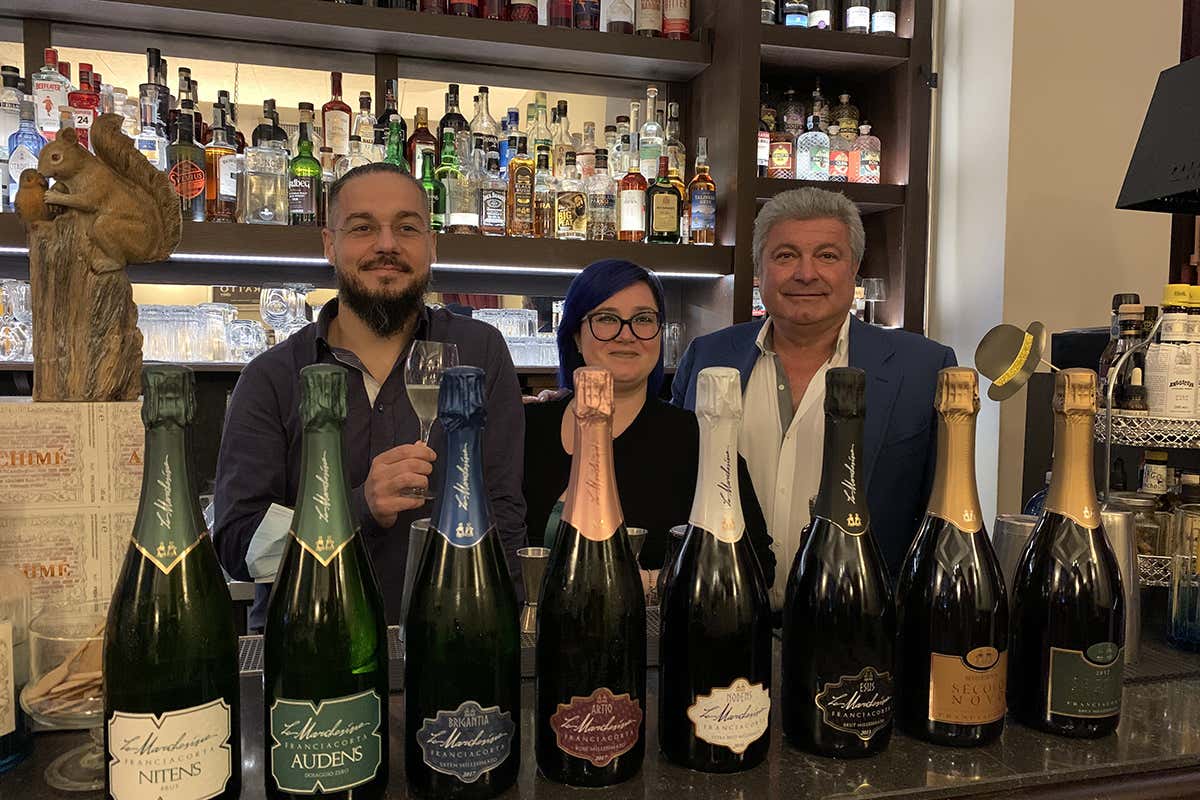 Andrea, Alice e Loris Biatta con le nuove bottiglie La rivoluzione culturale de Le Marchesine