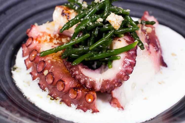 I piatti da non perdere sono la chitarrina al nero di seppia con gamberi rosa dell'Adriatico marinati al lime e zenzero, e il polipo grigliato servito su latte di cocco, salicornia e trito di noci.