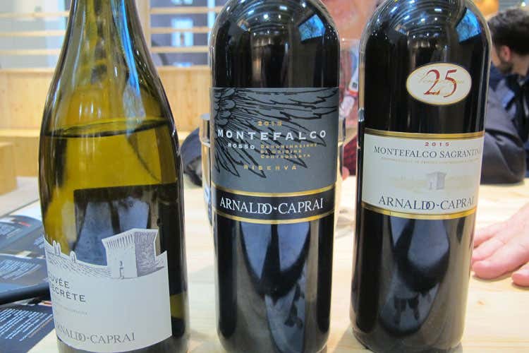 Montefalco rosso riserva 2015, assemblaggio di sangiovese 70%, sagrantino 15%, merlot 15% con affinamento in barrique per 20 mesi completato da una lunga sosta in bottiglia. Note di ciliegia sotto spirito, cioccolato e un tannino ancora molto vivo. In chiusura il 25 anni Montefalco Sagrantino docg, in purezza, lasciato per due anni in piccole botti di rovere. Grande complessità al naso e morbidezza in bocca, fresco e persistente.