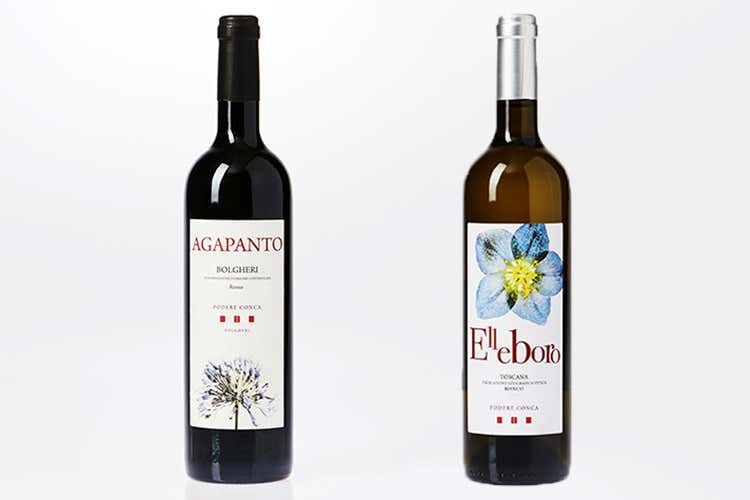 Protagonisti, nel limitato territorio bolgherese tra il mare e le colline, sono i vitigni internazionali di origine Bordolese, ben adattati con grandi risultati. Il bianco di Podere Conca è l'Elleboro Igt Costa Toscana (da Helleborus, fiore della famiglia delle Ranunculacee, detto anche Rosa di Natale perché fiorisce a dicembre). È uno di quei toscani subito riconoscibili, dalle note di frutta gialla estiva, perfetto in abbinamento con aperitivi e piatti di pesce. È prodotto con uve Viognier, il vitigno prevalente, poi Chardonnay e Sauvignon, ma con percentuali variabili secondo l'annata. È stato scelto di escludere il locale e diffuso Vermentino. Le vinificazioni sono separate e alla fine dell’affinamento viene formata la cuvée. Dopo la pressatura soffice il mosto fermenta in vasche di acciaio, dove avviene anche l'affinamento. Il rosso Agapanto Doc (dal greco antico agape,amore e anthos,fiore) è un blend di Cabernet Sauvignon, Cabernet Franc e Ciliegiolo, vitigno per cui Silvia Cirri ha una vera passione. Dopo la fermentazione in acciaio va in affinamento 12 mesi in legno (tonneaux e barriques di rovere francese di secondo passaggio) e poi 6 mesi in bottiglia. Armonico ed esuberante, con note intense di frutti rossi si abbina bene ai sapori intensi della tradizione toscana: salumi, formaggi e carni rosse.