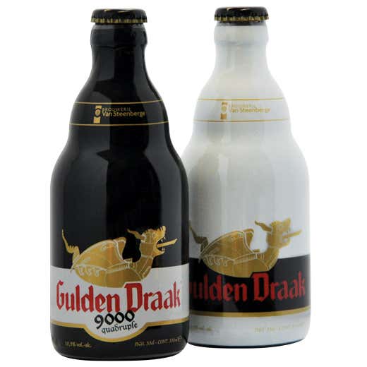 La ricetta della Gulden Draak 9000 Quadrupel, invece, consiste di 3 diversi tipi di malto aggiunti in un volume di 4 volte il contenuto di lager. È un classico del suo stile: benché la sua importante alcolicità, è una birra che si fa bere volentieri fin dall’aperitivo e si fa apprezzare anche dai meno esperti. Al naso l’impatto non è molto elevato e regala il tipico profilo delle ale belghe: fruttato, speziato e un po’ erbaceo. In bocca il corpo è strutturato, ma la presenza del mais ne alleggerisce il carattere. La schiuma è fine e compatta, aderente e persistente. Il colore è giallo oro carico e gli aromi si propongono con una gradevole finezza. Disponibili entrambe in bottiglie da 33 cl, 75 cl e da 1,5 litri.