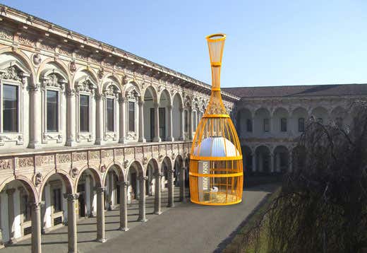 L’accostamento tra nuovo e antico si ripropone nel dialogo tra l’installazione, la Torre Velasca di B.B.P.R., che con i suoi 106 metri di altezza svetta nel panorama cittadino, e il colonnato del Cortile d'onore del ‘600 progettato dall’architetto fiorentino Filarete, dove alla purezza ritmica della successione di archi a tutto sesto dei cortili fa da contraltare l'esuberanza delle decorazioni in cotto.