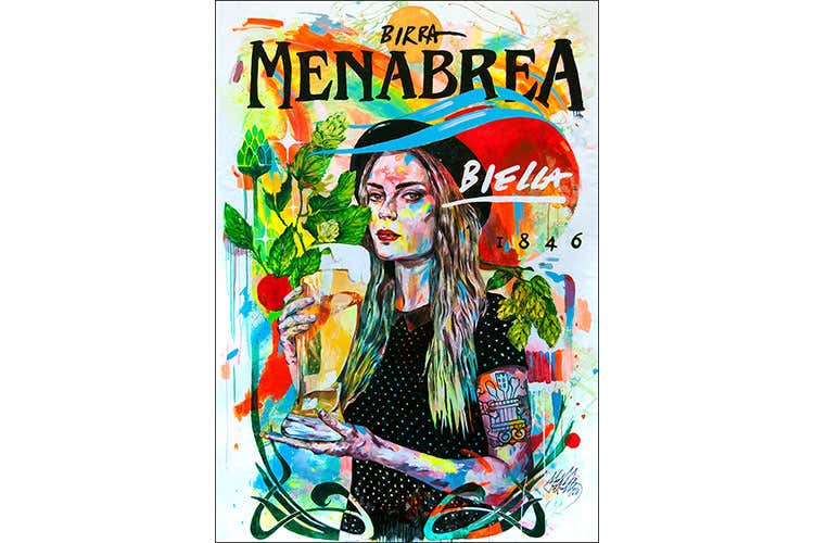 È del pittore Max Petrone l’opera dedicata a Birra Menabrea, dal titolo “1846”, la data di nascita dell’azienda che quest'anno celebra 170 anni di attività. Una grande tela (150x210 cm), che vede rappresentato il mondo del brand biellese: la bionda e la sua birra, il marchio, il luppolo, la città. Uno stile molto contemporaneo e street quello di Max, coloratissimo e dalla pennellata veloce, declinato in questo progetto con uno sguardo al passato, progettato e realizzato come un manifesto pubblicitario alla maniera di una volta.