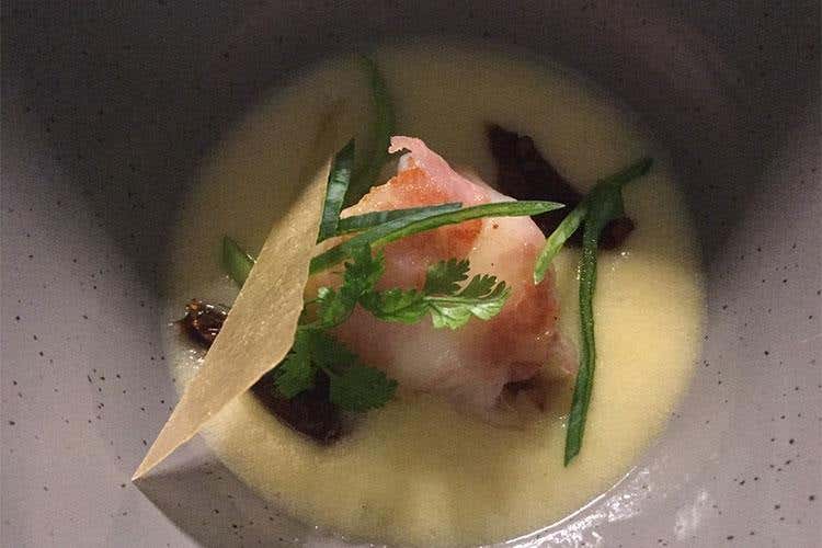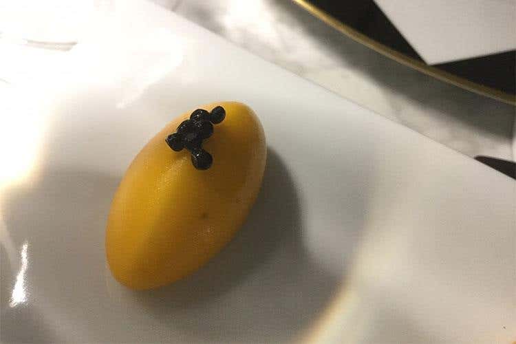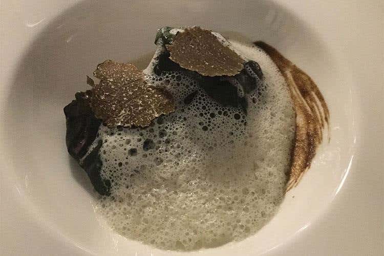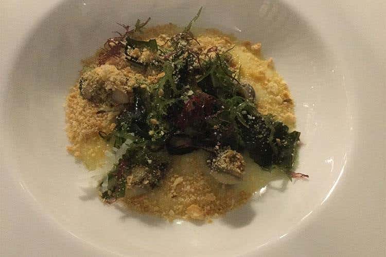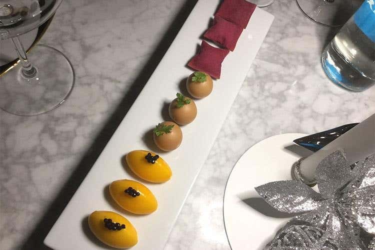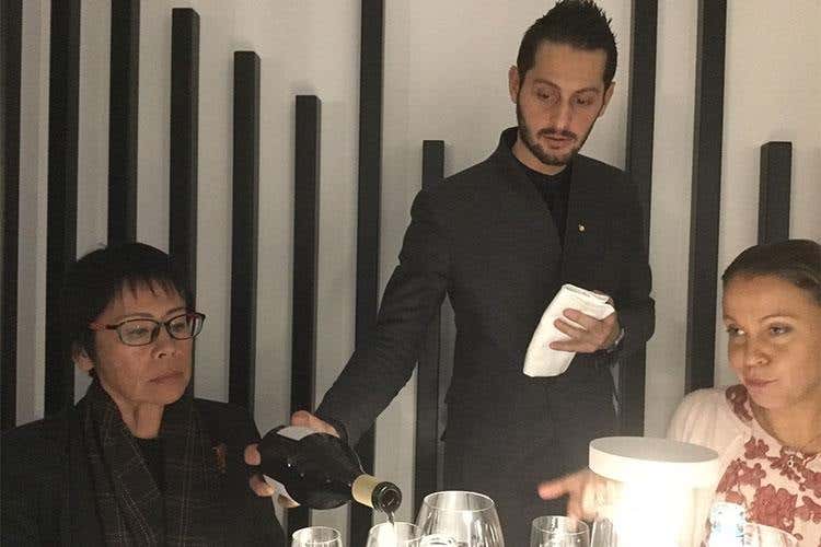 Un menu a quattro mani con Antonio Scalera del ristorante “La Bul” di Bari che ha conquistato gli ospiti, accolti dai manager dell'azienda, tra cui Luca Maruffa, responsabile marketing e comunicazione di cantine San Marzano. Per aperitivo, con amouse bouche di gran gusto, ecco il Liboll Extra dry, uve Chardonnay con un 10% di Bombino è un 10% di Minutolo di ottima struttura, bella beva in abbinamento a sapidità complesse e ricche.