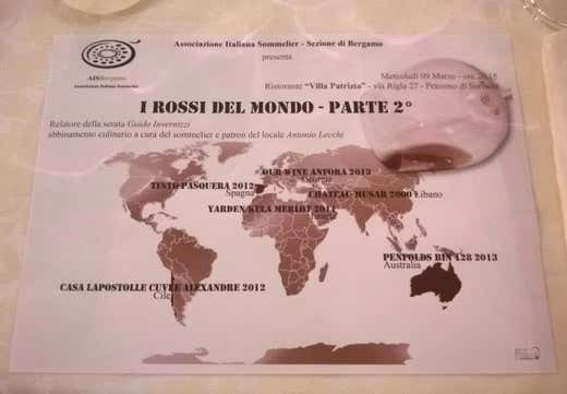 Un assaggio di alcune interessanti realtà vinicole provenienti da tutti i continenti si è svolto in occasione della serata organizzata dall’Ais (Associazione italiana sommelier) di Bergamo, presso il ristorante “