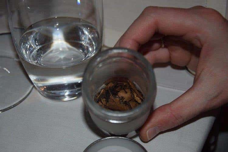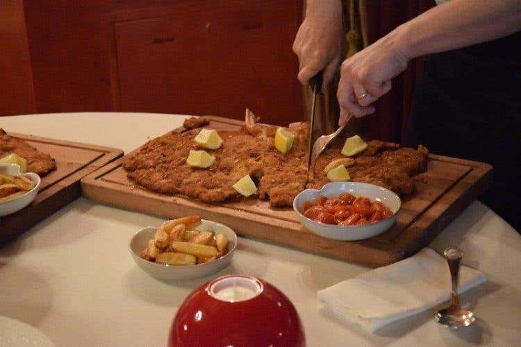 Chiude la verticale l’annata 2012, dalle note olfattive lievi ma con un gusto di decise caratteristiche fruttate che prepara il palato al piatto clou della serata: la famosa “Orecchia di elefante alla milanese” di Chicco Cerea, una prelibatezza unica! È la prima volta che assaggio la cotoletta alla milanese in questa versione, per la quale occorre un’ottima sella di sanato piemontese lasciato frollare per quattro settimane. Da qui si ricava un carrè dal quale utilizzare solo sette delle otto coste; con grande maestria bisogna battere delicatamente e per bene la carne una volta distesa su un piano di lavoro, così da ammorbidirla e portarla ad uno spessore di circa un centimetro e mezzo per un diametro perlomeno di cinquanta. Una spiegazione quasi enciclopedica ma necessaria per capire l’arte di questo piatto.