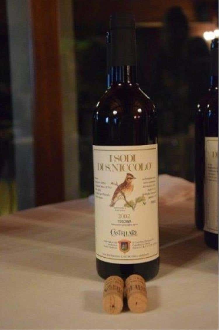 Il 2005 è maturato bene, in un’annata che possiamo definire standard, un classico da un buon profumo e di colore rubino, dai sentori di cioccolato, con note di caffè. Equilibrato e con un buon impianto tannico. L’etichetta di questa bottiglia raffigura lo Stiaccino, un uccellino di piccole dimensioni, più piccolo di un passero. Tutte le etichette di Castellare di Castellina rappresentano una vera e propria collezione poiché sulle etichette di Castellare è riprodotto ogni anno un uccello diverso, scelto fra quelli in via di estinzione. La presenza di questi uccellini in questi territori è sintomo di un’attenzione verso l’ambiente, con un utilizzo di diserbanti non chimici, quali zolfo e verderame in piccole quantità.