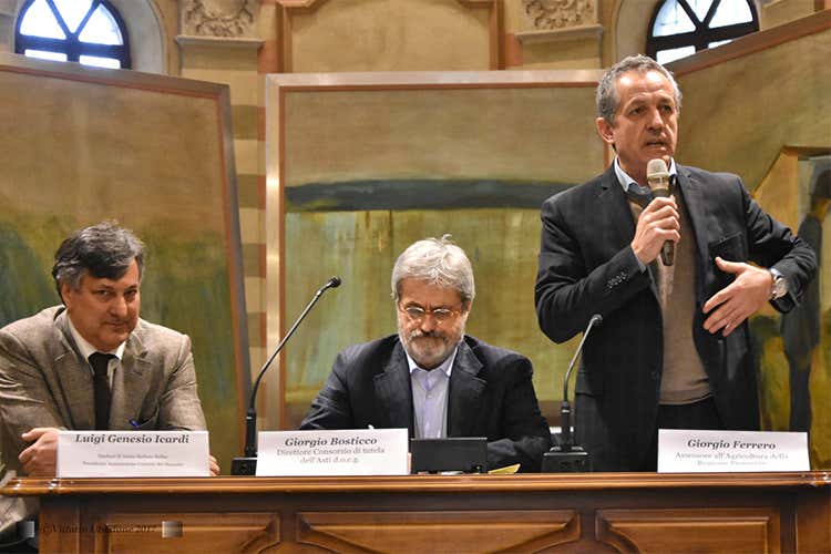 Luigi Genesio Icardi (presidente dei Comuni del Moscato), Giorgio Bosticco e Giorgio Ferrero - Asti Secco, mani avanti sull'identità Giorgio Bosticco: «Non copiamo nessuno»