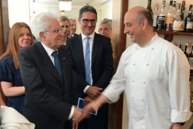 Sergio Mattarella per l'Italia e Alexander Van der Bellen per l'Austria hanno celebrato 25 anni di pace per la questione altoatesina tra le due nazioni al ristorante di Andrea Fenoglio. In tavola i vini delle due cantine
