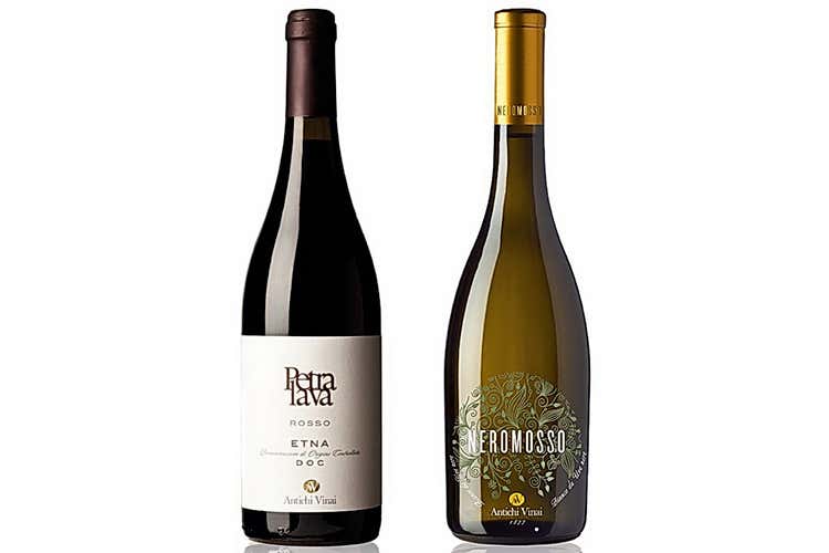 Petralava 2015 Etna Doc, rosso, struttura, severità, fascino; Neromosso, bianco da Nerello Mascalese frizzante dalla beva piacevolissima e dal naso ricco.
