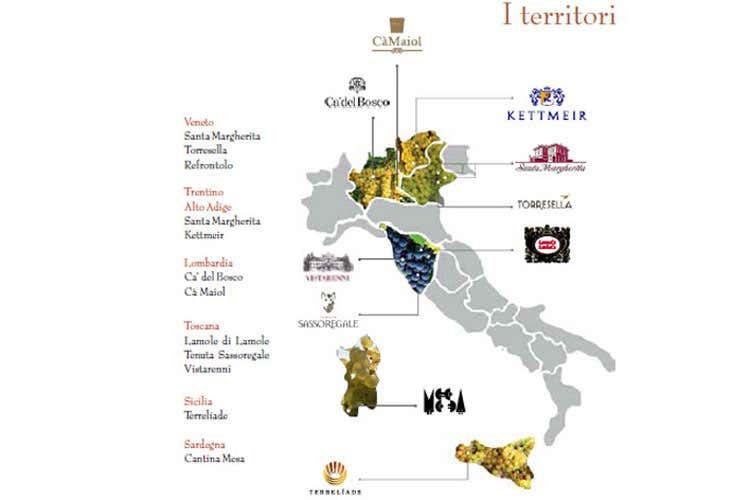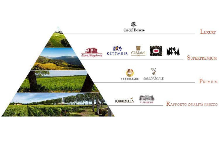 Un gruppo che nel mondo del vino presenta una duplice realtà: marchio leader per volumi con un vino di punta che dal 1961, anno di nascita, ha cambiato le regole conquistando gli Stati Uniti dove è il simbolo del made in Italy a Tavola (il pinot grigio Santa Margherita, dall’insostituibile etichetta con la palazzina di Portogruaro), e al tempo stesso mosaico di eccellenze che in una piramide ideale vede al vertice una cantina simbolo del luxury come Cà del Bosco, acquisita nel 1994 e punto di riferimento dell'alta ristorazione.