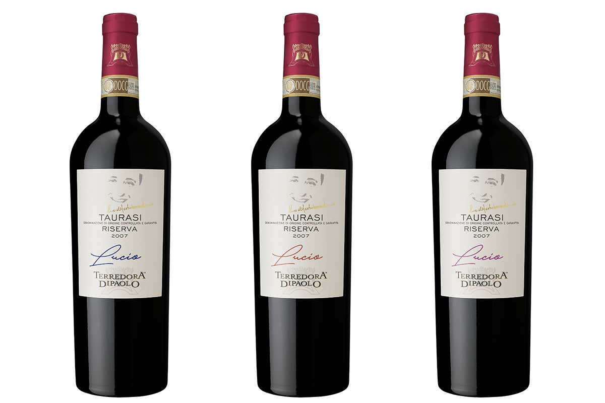 Un’etichetta nuova, con tratti in comune con la tradizionale linea di produzione: in etichetta l’immagine di Lucio, tratteggiata in color canna di fucile, con il volto sorridente, così come viene ricordato da tanti che lo hanno conosciuto. Le bottiglie si presentano avvolte in carta velina con il nome “Lucio”, poste all’interno di una cassetta di legno chiaro con il logo “Terredora di Paolo”.