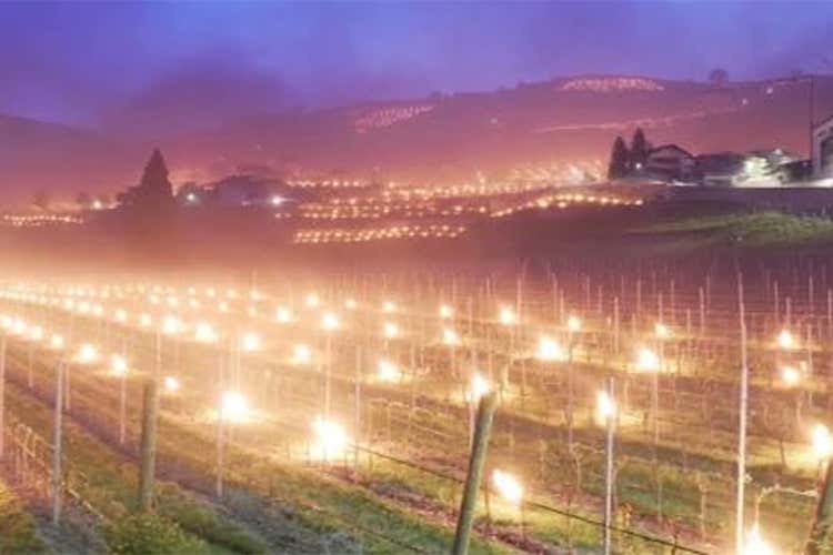 grandi rotoli di paglia posizionati nei vigneti. L’obiettivo è generare fumo e calore a bassa altezza bruciando lentamente la paglia bagnata. Il risultato visivo è suggestivo, quello sui vigneti lo si scoprirà tra qualche giorno».