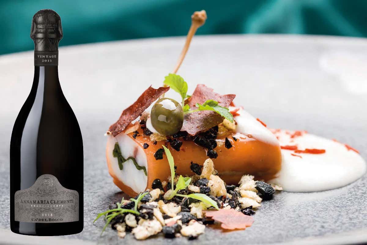 Rana pescatrice, lattuga di mare, pomodoro e topinambur di Domenico Zaccaria della Nazionale Italiana Cuochi in abbinamento all'Annamaria Clementi Riserva 2015 di Ca’ Del Bosco