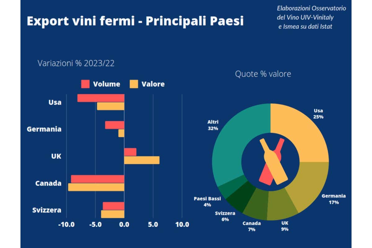 Anno da dimenticare, il 2023, per l'export del vino italiano