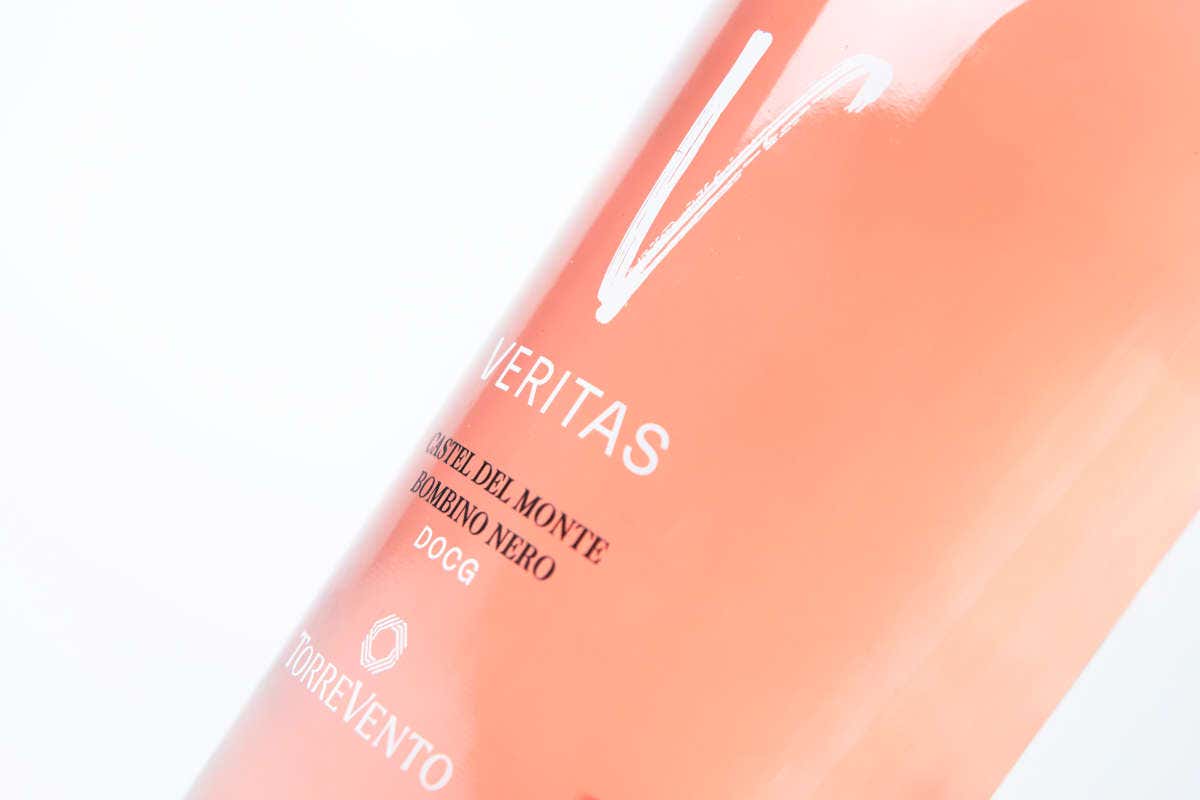 Il tratto più contemporaneo di Torrevento è rappresentato sicuramente da Veritas (Castel del Monte Bombino Nero Docg Rosé). Un rosé fresco, leggiadro e profumato, ottenuto da Bombino Nero, l’unico vitigno italiano a cui è dedicata una Docg per il vino rosato. Le uve vengono raccolte tra fine settembre e l’inizio di ottobre e subiscono una pressatura soffice con fermentazione alcolica a temperatura controllata in vasche di acciaio inossidabile, che ne mantengono intatti i sentori varietali. L’affinamento conclusivo avviene con un breve passaggio sempre in acciaio.