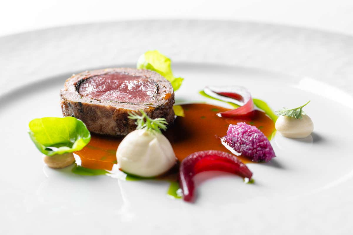 Lombo di pecora in crépinette, cremoso al cavolfiore, fondo alla diavola e maionese al sesamo di Moma