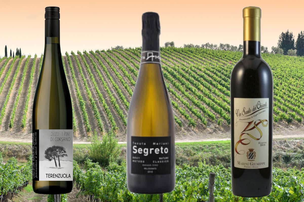 Il Colli di Luni Vermentino Superiore Pini di Corsano di Ternezuola, il Segreto Brut di Tenuta Mariani e il Vin Santo del Chianti Riserva di Marini