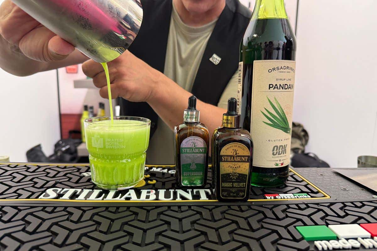 «Il primo prodotto di cui vi parlo è il Super Sour, una soluzione innovativa che unisce in un solo prodotto una componente acida e una salina. Pensato per esaltare l’acidità nei drink e bilanciare la dolcezza, il Super Sour è ideale anche per chi desidera realizzare cocktail limpidi, evitando l’utilizzo di succhi freschi come limone o lime. È perfetto quindi per creare un super juice o da aggiungere direttamente nel drink per amplificarne i sapori. Ma non è solo acidità: all'interno troviamo anche una piccola percentuale di sale, che agisce come esaltatore di gusto, e un tocco di zucchero, per armonizzare il tutto. È una soluzione estremamente versatile. Ad esempio, bastano una o due gocce in un Martini per valorizzare le note botaniche del gin e del vermut. Oppure, per un twist moderno e trasparente su un Paloma, si possono usare 8–10 gocce direttamente nel drink, o preparare in anticipo un super juice personalizzato. Passando alla seconda novità, il nostro sciroppo al pandan. Il pandan è una pianta asiatica poco conosciuta in Italia, ma dal profilo aromatico affascinante: un mix tra nocciola, cocco e note vegetali, che le conferiscono un gusto unico e un colore verde brillante, perfetto per drink accattivanti ed estivi. Questo sciroppo rappresenta un modo semplice ma d’effetto per portare un tocco esotico e originale nella drink list di un locale».